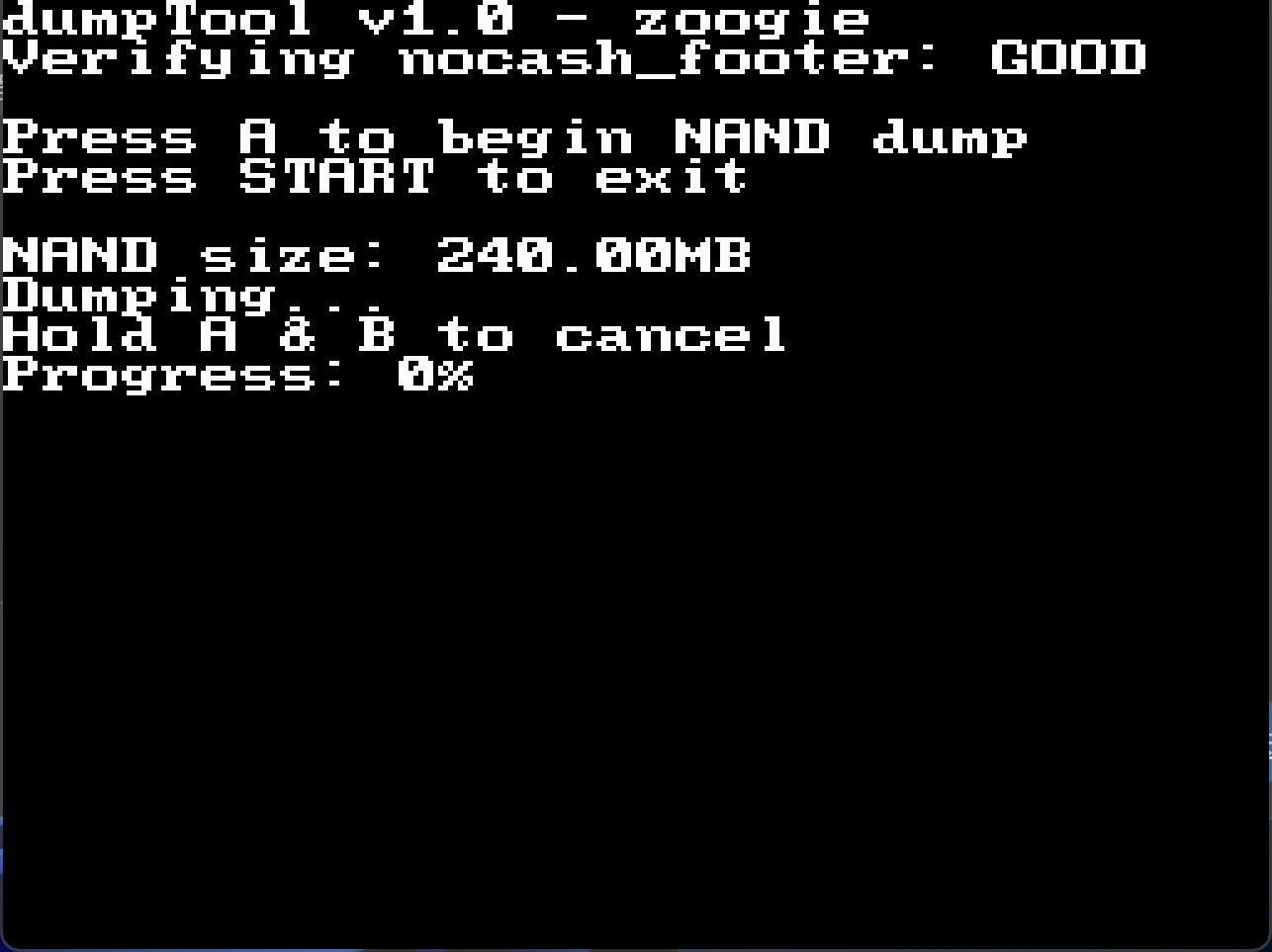 5.在此界面,按 A 即可导出 NAND 文件。这个过程耗时有点长(7 分钟左右),请耐心等待。